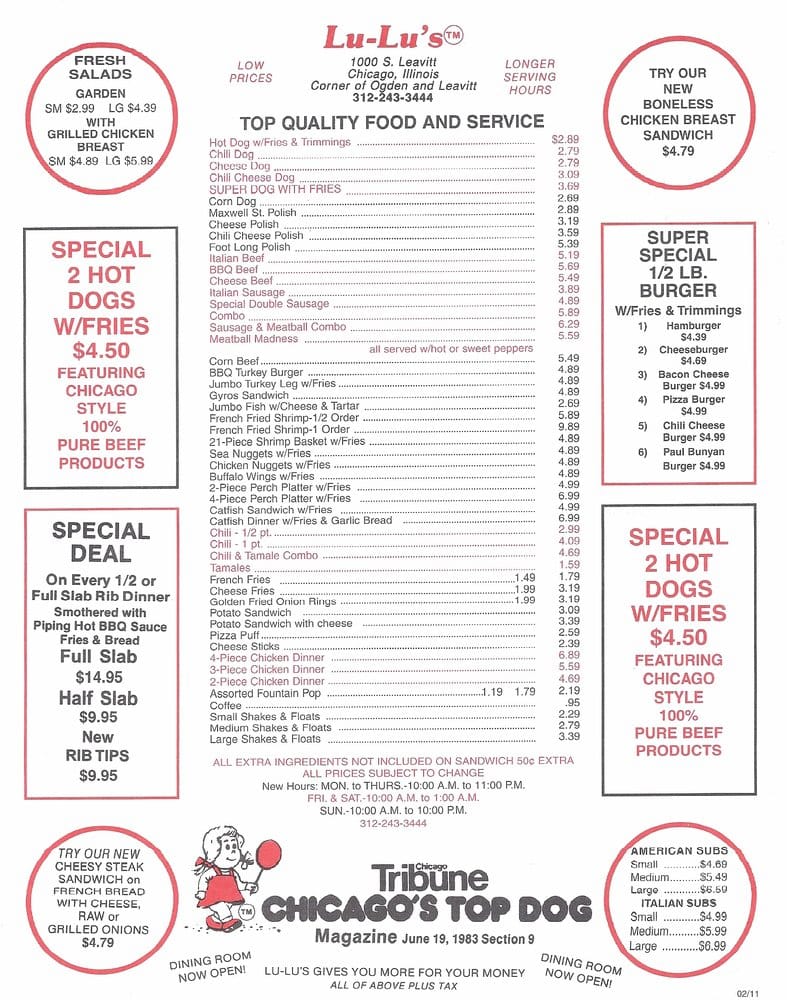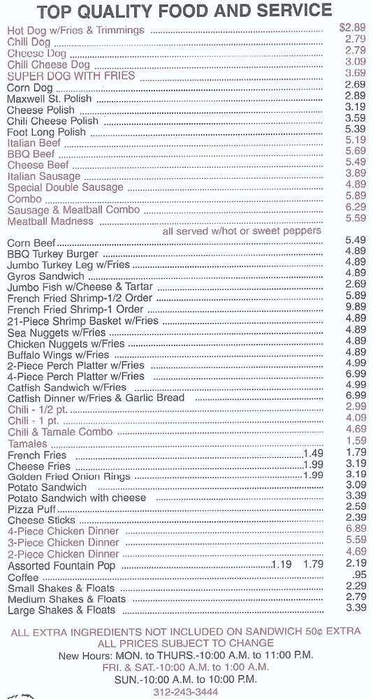 Introducing Lulu's Hot Dogs, a hotspot in Chicago offering a mouthwatering selection of hot dogs, burgers, and sandwiches. Located at 1000 S Leavitt St, this casual spot is perfect for lunch, dinner, or late-night cravings. Their menu boasts top picks like the classic Chicago-style hot dog, Italian beef sandwich, cheeseburger, and gyro sandwich. Don't miss out on specials like the Maxwell Street Polish and Double Italian Sausage with fries and a drink included. Customers rave about the friendly service and affordable prices, with one reviewer praising the Black Bean veggie burger as a must-try. Enjoy the outdoor seating, TV, and Wi-Fi while indulging in Lulu's delicious offerings. Try their famous hot dogs with all the trimmings and experience the taste of Chicago at Lulu's Hot Dogs.